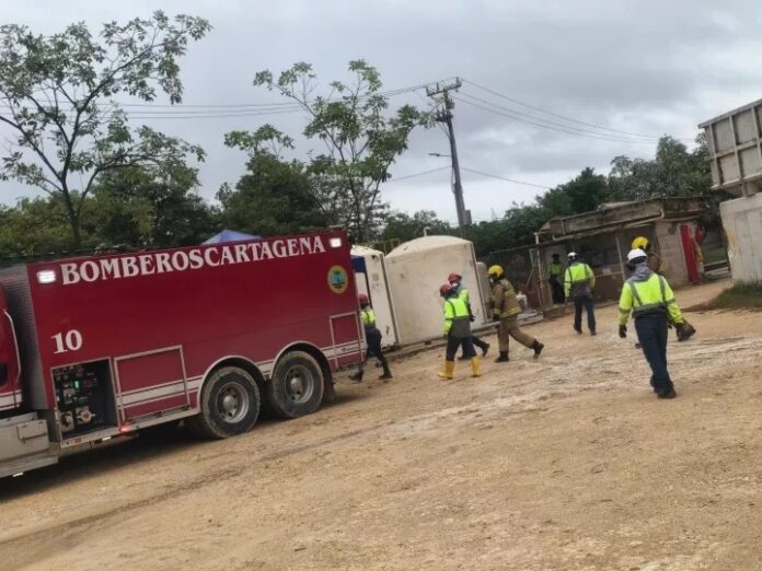El Cuerpo de Bomberos de Cartagena atendió este viernes una emergencia en una empresa de la Zona Franca de La Candelaria, en la vía Mamonal. El incidente se originó por una reacción de residuos de cal en el filtro de mangas del área de molienda, lo que generó aumento de temperatura y humo.