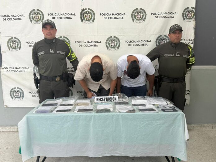 Los capturados fueron identificados como Jainer Berrio Garizabalo, de 22 años, y Víctor Gómez González, de 47. Ambos fueron puestos a disposición de la Fiscalía General de la Nación por el delito de receptación.