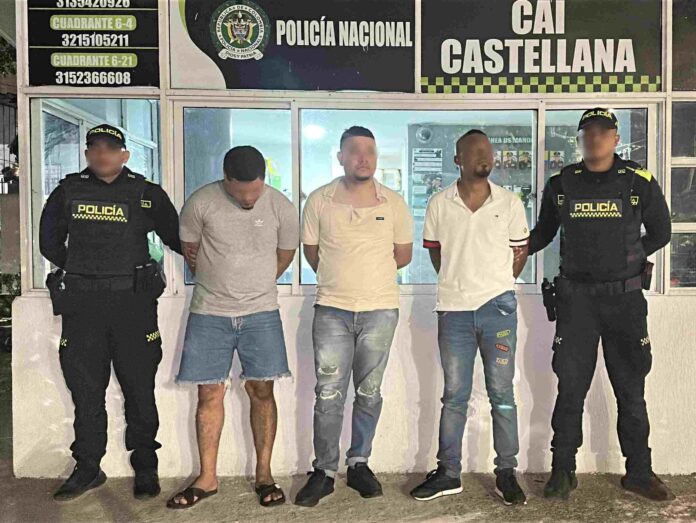 Tres presuntos delincuentes fueron capturados en las últimas horas en el barrio Los Alpes, tras ser señalados de robar una cadena de oro y un celular a un ciudadano. La Policía Nacional los identificó como alias ‘el Larry’, ‘el Nica’ y ‘el Jose’, de 26, 26 y 33 años respectivamente.