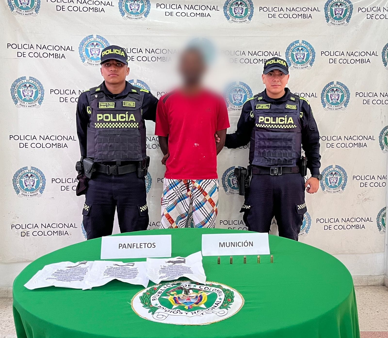 Durante los planes de control y registro de antecedentes, los uniformados sorprendieron al presunto delincuente con cartuchos calibre 9 milímetros y panfletos alusivos al grupo delincuencial “Los Pepes”. Gracias a la rápida intervención, el sospechoso fue puesto a disposición de las autoridades competentes, mientras avanzan las investigaciones para determinar su posible vinculación con extorsiones contra comerciantes del sector.