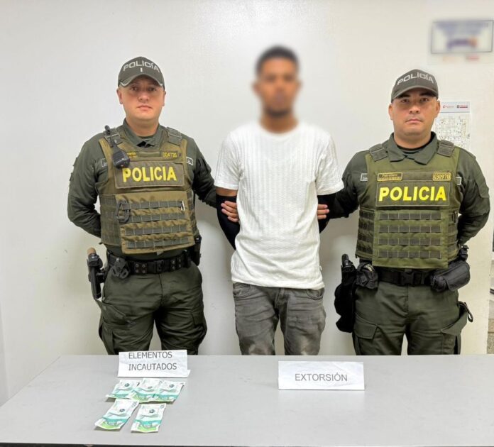 La detención ocurrió en el barrio San Vicente cuando, según las autoridades, el presunto extorsionista intentaba huir con dinero recibido de una víctima.
