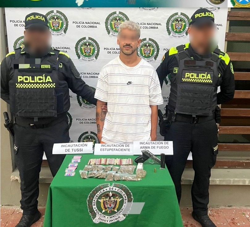 Durante el operativo, los uniformados incautaron 32 cigarrillos de marihuana, 12 bolsas de marihuana, seis bolsas de tussi, 40 empaques para dosificación, un armador de cigarrillos y una pistola calibre 7.65 milímetros con dos cartuchos. Las evidencias refuerzan el señalamiento de que el capturado controlaba el microtráfico en varios sectores del municipio.