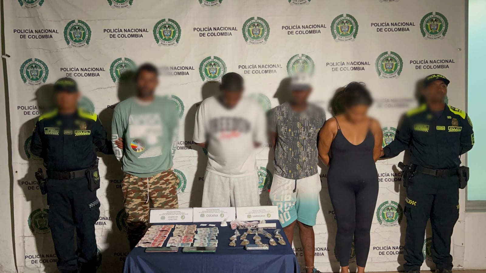 Durante el operativo, la Policía incautó 330 dosis de marihuana, 63 de bazuco, 17 de base de coca, 5 de cocaína, tres celulares y dinero. Los capturados quedaron a disposición de la Fiscalía.