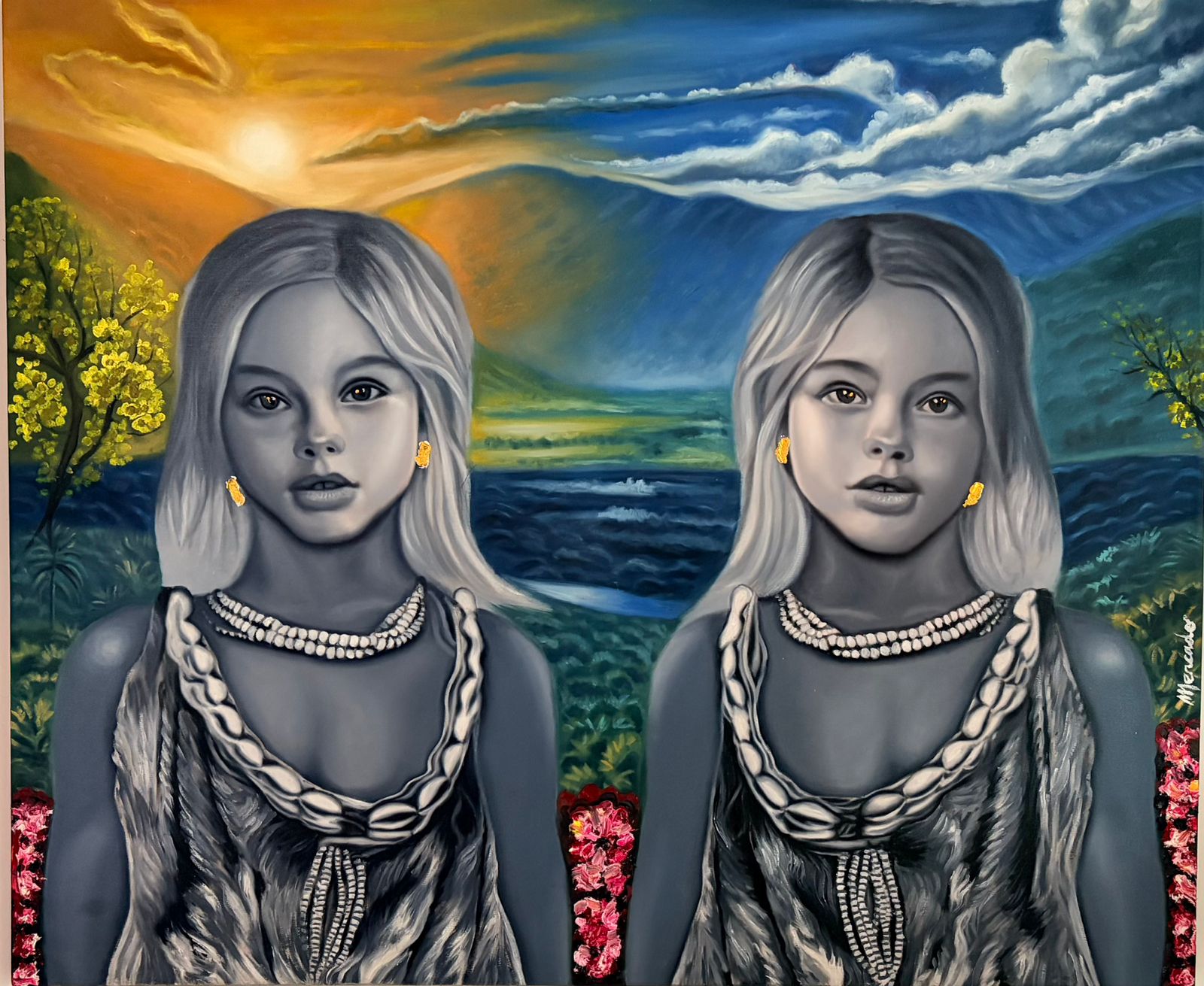 A través de dos rostros femeninos casi idénticos, la obra expone la tensión que enfrentan hoy las democracias: avanzar hacia la reconciliación o profundizar la confrontación. Las figuras miran con serenidad, pero también con determinación, y representan la conciencia ética que exige cada elección.