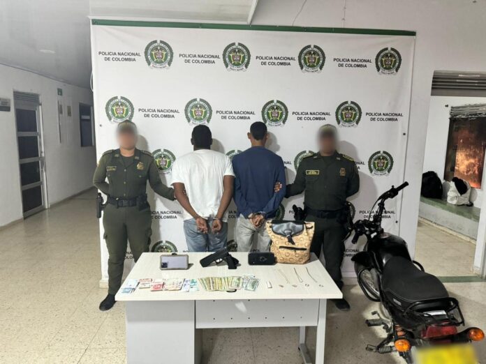 La Policía Nacional de Cartagena asestó un golpe contundente contra la delincuencia con la captura de dos presuntos ladrones en el barrio Nuevo Bosque. En el marco del «Plan Horus» y la estrategia «Plan Cazador», los uniformados interceptaron a alias «Guillermito», de 21 años, y alias «Joselito», de 22, quienes minutos antes habían despojado de sus pertenencias a una mujer.