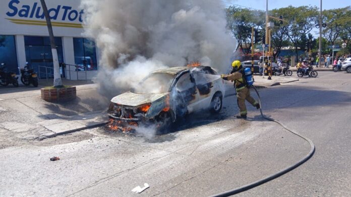Los tres ocupantes del automóvil evacuaron a tiempo y resultaron ilesos. Las autoridades investigan las causas del incendio.