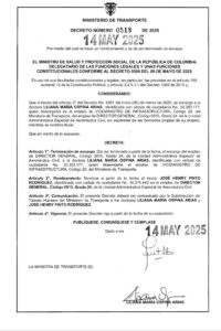 El decreto, firmado por la ministra encargada Liliana María Ospina Arias, quien hasta la fecha venía desempeñándose en ese cargo en calidad de encargada, establece el relevo inmediato en la dirección de la entidad, una de las más estratégicas para la infraestructura aérea del país.