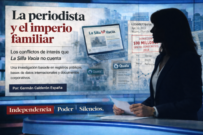 Porque La Silla Vacía sí tiene «otros negocios»: una LLC en Miami, La Silla Vacia LLC, documento L23000177658 del Estado de Florida, cuyo único miembro es Blogosfera Producciones S.A.S. Porque su directora y fundadora es accionista de Química Comercial Andina S.A.S., empresa que firmó contratos con Ecopetrol por más de $65.000 millones entre 2018 y 2023. Porque su familia es cofundadora y accionista de Quala S.A., empresa que en 2018 donó $90 millones al Centro Democrático. Porque sus mayores financiadores, USAID, Embajada Británica, KAS, Fundación Ford, son organizaciones con agendas geopolíticas propias sobre Colombia.
