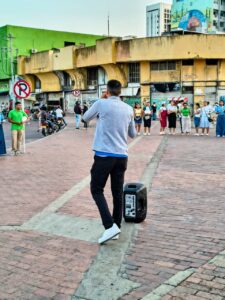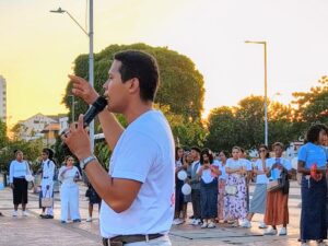 Durante la jornada, el joven Jedidas González motivó a otros participantes a acercarse a la ciudadanía para orar por ellos, incluyendo habitantes de calle y vendedores ambulantes.