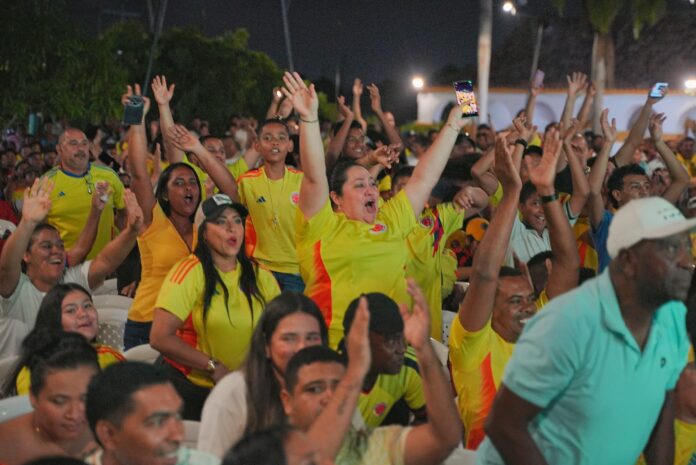 Turbaco, 25 de marzo de 2025 – La plaza de Turbaco se convirtió en un verdadero ‘estadio virtual’ con la transmisión en pantalla gigante del partido entre la Selección Colombia y Paraguay. Más de 2.000 personas se reunieron para disfrutar del encuentro, en una iniciativa liderada por el gobernador de Bolívar, Yamil Arana Padauí.