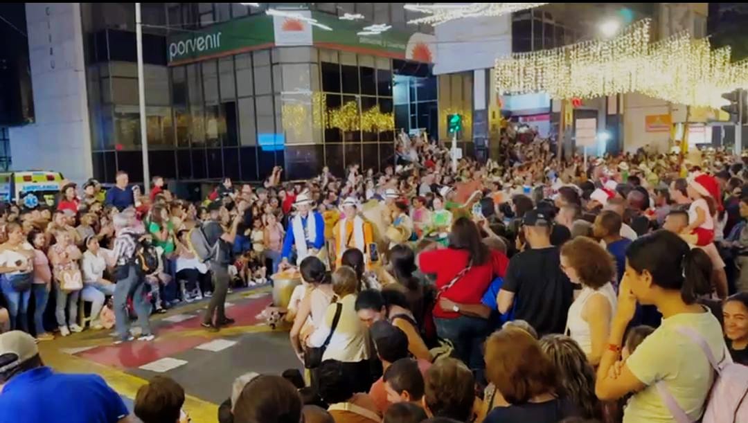 Bajo el lema “Una Navidad Mágica”, el desfile avanzó por 2,7 kilómetros e incluyó la participación de 39 colectivos artísticos y una carroza invitada de Medellín, que llevó el vagón Regalo de Navidad y animó a familias enteras durante la jornada nocturna.