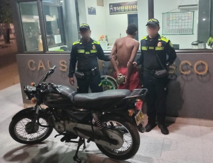 En el sector del Biblioparque, barrio San Francisco, la Policía sorprendió a un joven de 22 años, identificado como «El Miguelito», quien se movilizaba en una motocicleta Boxer con placas MDE88D. Al cotejar la información en los sistemas de seguridad, la motocicleta apareció con reporte de robo.