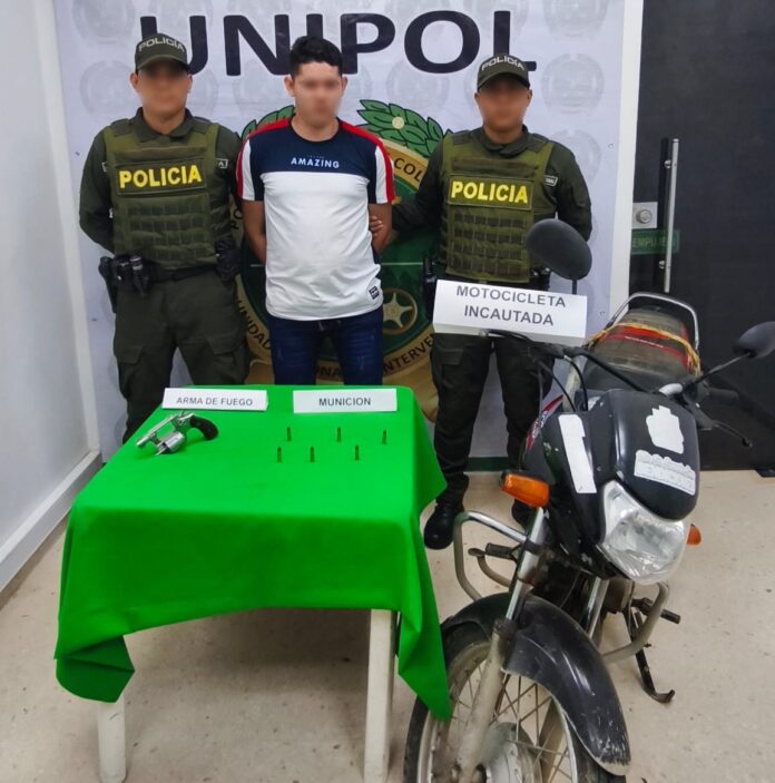 En El Pozón, miembros de la Unidad Nacional de Intervención Policial y Antiterrorismo (UNIPOL) sorprendieron a alias el Diego, cuando se movilizaba en motocicleta con un revólver calibre 38 y seis cartuchos sin percutir. Los uniformados procedieron de inmediato a capturarlo e incautaron también el vehículo en el que se desplazaba.